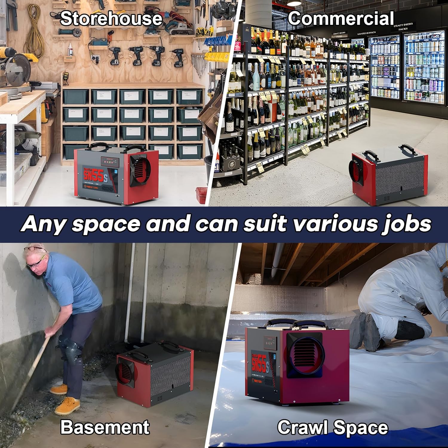 Wide Coverage Area: It can efficiently cover up to 1,300 sq. ft., making it perfect for basements, crawl spaces, garages, storage rooms, and commercial spaces.