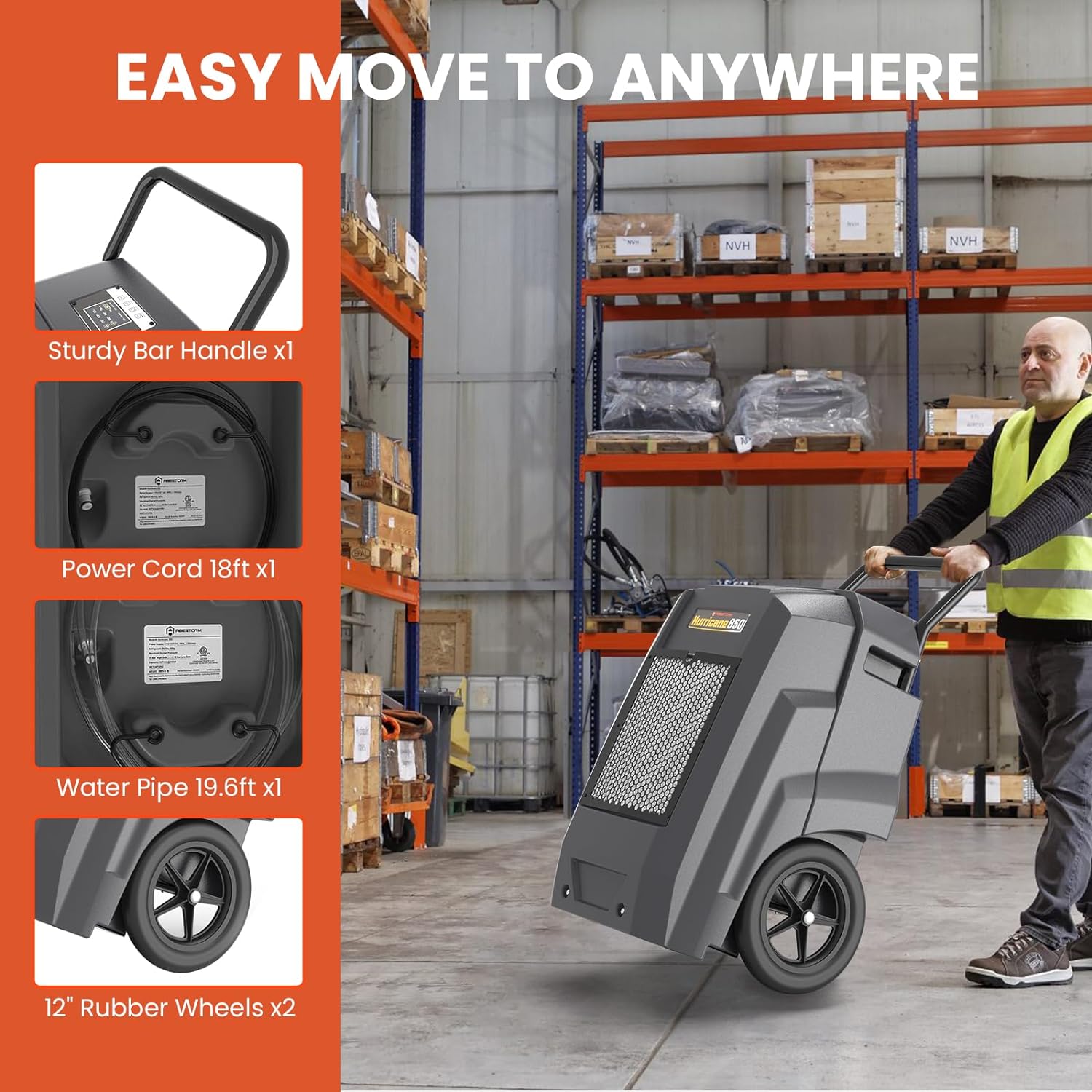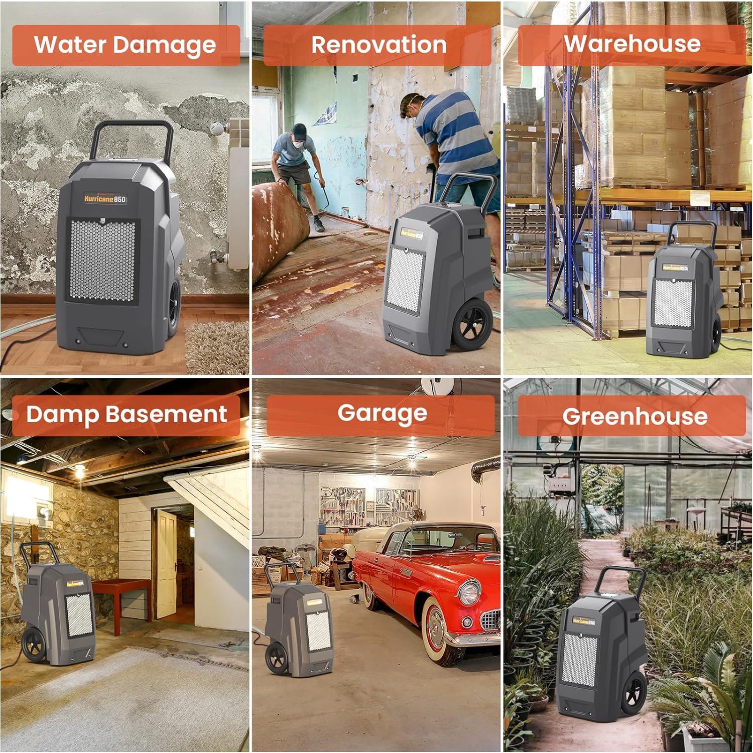 The Hurricane series is ideal for basements, warehouses, garages, gyms, workshops and industrial job sites. Whether for water damage restoration, humidity control in storage spaces or improving comfort in large areas, it offers reliable and efficient moisture control for diverse environments.