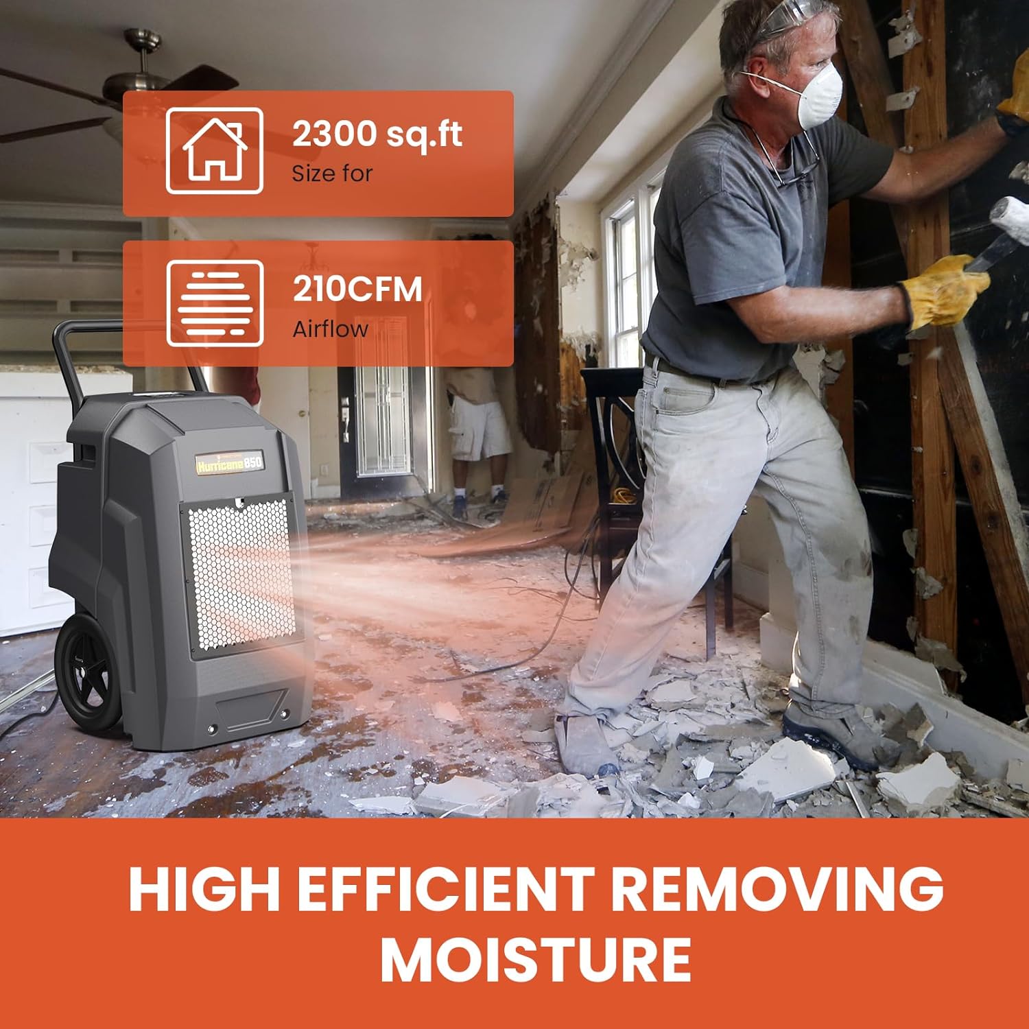 Abestorm Hurricane 850 Commercial Dehumidifiers are engineered to reduce excess humidity quickly and efficiently. It can cover large areas up to 2,300 sq. ft., making it suitable for commercial and industrial use, as well as for larger residential spaces.