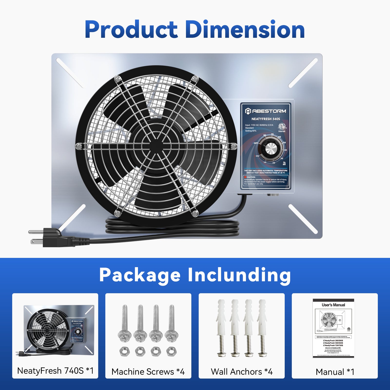 ◆Product Type: Abestorm 540CFM NeatyFresh 540S is a powerful crawlspace ventilation fan designed to improve airflow and reduce moisture buildup in crawlspaces, basements, and other enclosed areas.